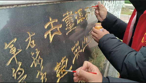 寒假刚开始,志愿者们就迅速联系各地军人事务管理局,了解陵园现状,主动请缨,准备描红镀金扫墓的相关工具。