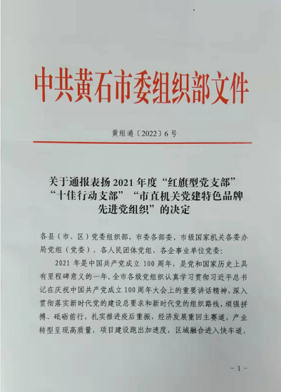 近日,黄石市委组织部下发通报,表彰2021年度全市先进党组织,爱体育体育(中国)官方在线理工学部学生党支部被评为黄石市2021年度“红旗型”党支部。