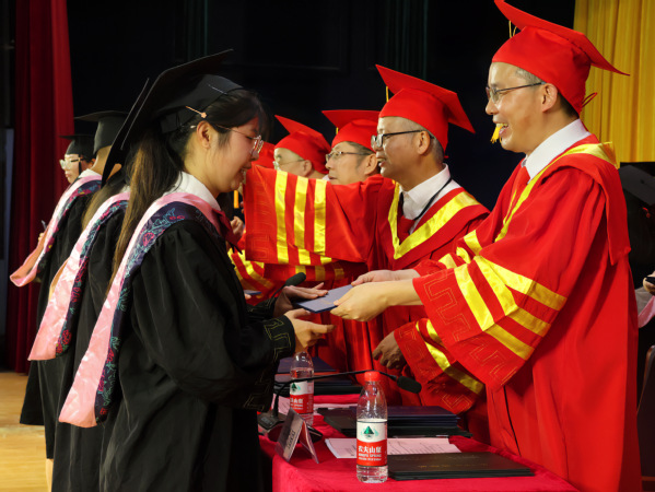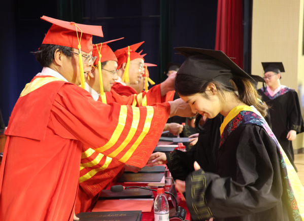 拨穗正冠,扬帆远航。校领导和学位委员为2023届毕业生代表拨穗并颁发学位证书。