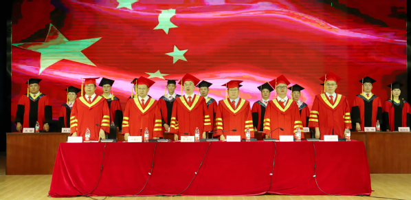 毕业典礼在雄壮的国歌声中拉开序幕。