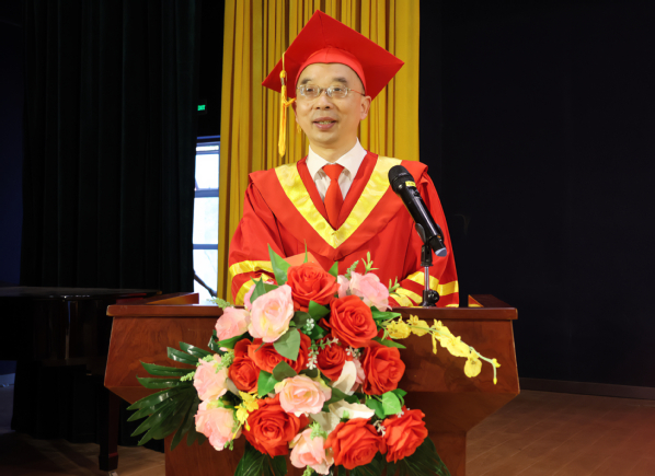 李开灿在讲话中代表学校向圆满完成学业的毕业生致以最热烈的祝贺,他表示,多年的求学生涯,同学们不仅具备了知识体系和专业能力,还收获了永生难忘、日久弥新的同学谊和师生情。在临别赠言中,他提出了三点希望:一是要胸怀天下,与时代同频,不断提升思想深度;二是要深学笃行,与社会共振,不断增强实践力度;三是要理性独立,与他人共赢,不断增加人生厚度。同时,他也希望大家奔赴新征程后能够不忘母校,常回家看看。