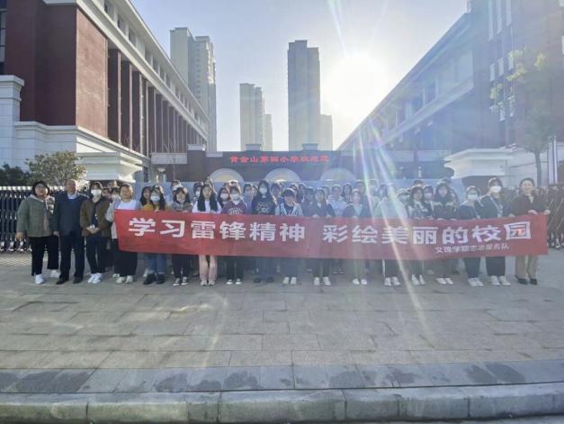 为深刻把握雷锋精神的时代内涵,弘扬雷锋精神和“奉献、友爱、互助、进步”的志愿精神,争做新时期雷锋精神的践行者,在校园中形成“人人学雷锋、天天学雷锋、时时有雷锋”的良好氛围。2023年3月26日早上8:00,教育与艺术学部在党总支书记和专业老师的带领下,美术专业志愿者一行50人前往黄金山第四小学,参与“学习雷锋精神,彩绘美丽校园”的志愿服务。